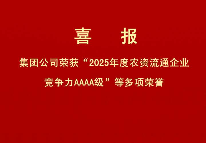 喜報(bào)|集團(tuán)公司榮獲“2025年度農(nóng)資流通企業(yè)競爭力AAAA級”等多項(xiàng)榮譽(yù)